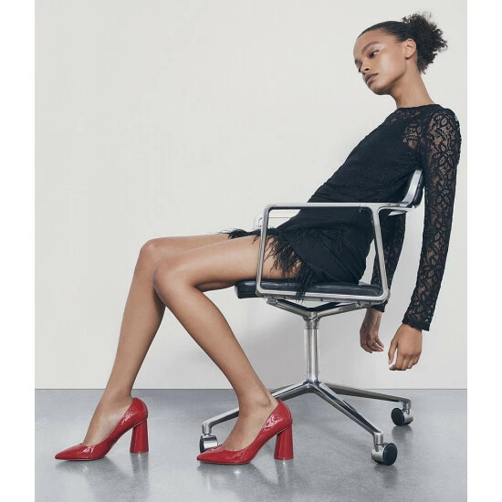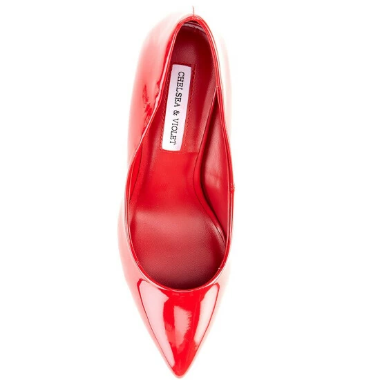 From Chelsea & Violet, the Keira Patent Pointed Toe Rounded Heel Pumps feature: